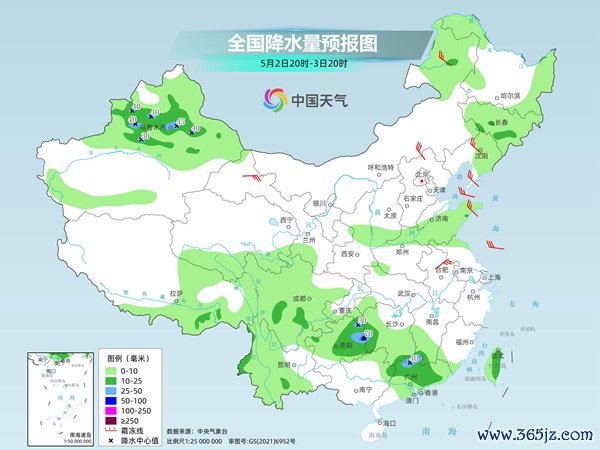 明天夜间到后天,江西南部、福建东南部和西北部、贵州东南部、广西东北部、广东西北部等地部分地区有暴雨或大暴雨。
